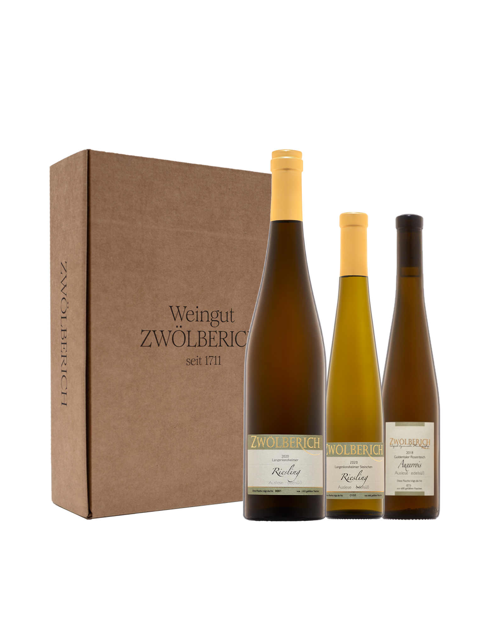 Diese edelsüße Selektion im eleganten Präsentkarton vereint drei edle 2020er-Weine: die Langenlonsheimer Riesling Auslese Edelsüß mit frischer Mineralität und Aromen von Zitrus und Honig, die Riesling Auslese Langenlonsheimer Steinchen mit reicher Frucht und Pfirsich-Noten sowie die Auxerrois Auslese Guldentaler Rosenteich mit cremiger Textur und feiner Honignote. Ein stilvolles Geschenk für Liebhaber edelsüßer Weine.