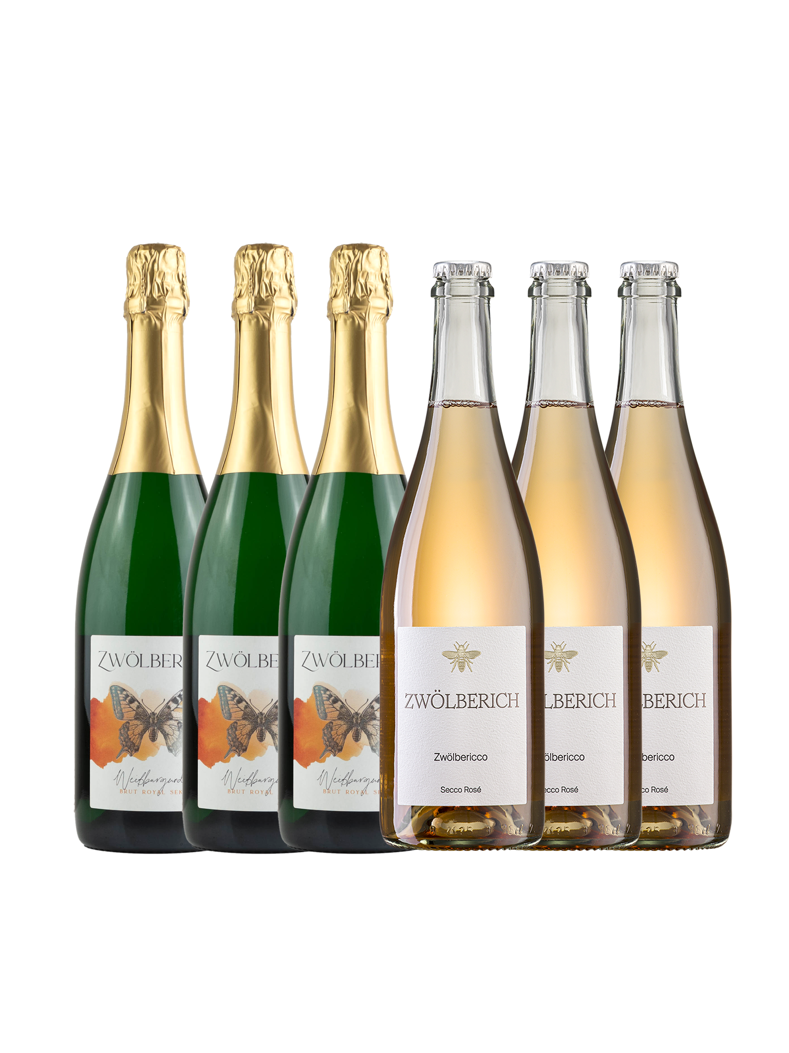 Dieses Paket vereint elegante Frische und feinste Perlage für die Osterfeiertage: Drei Flaschen Brut Royal, ein hochwertiger Schaumwein mit klassischer Flaschengärung, der durch lange Reife auf der Feinhefe mit cremigem Schmelz, feinem Mousseux und lebendiger Frische überzeugt. Dazu drei Flaschen Zwölbericco Secco Rosé – blassrosé, fein perlend und wunderbar leicht. Frische Beerenfrucht, ein Hauch Steinobst und florale Noten machen ihn zum perfekten Aperitif – auch ideal auf Eis mit Minze. Perfekt für Osterbrunch, Gartenmomente und alles, was nach Frühling schmeckt.